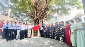 3月8日下午,劳动荣军和社会厅与平阳美术文化中专学校协调举行公认该校内的香苹婆树为越南遗产树的仪式。