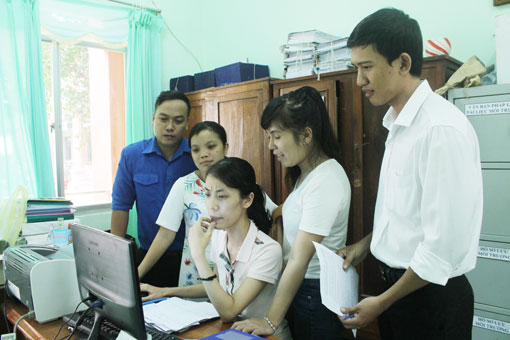 Cán bộ công chức phường Chánh Nghĩa (TP.Thủ Dầu Một) tìm hiểu thông tin về cuộc thi trên internet