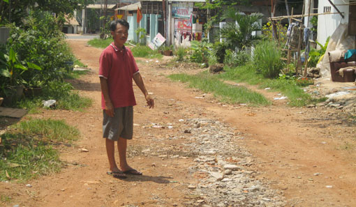 Ông Võ Đức Phong, Chủ tịch UBND phường Phú Thọ cho biết, tuyến đường thuộc khu phố 4 và khu phố 5 giáp ranh với khu phố 8 nằm trong quy hoạch dự án Khu nhà ở Phú Thọ. Do đó, việc đầu tư làm đường nhựa nóng sẽ do chủ đầu tư thực hiện. Hiện nay, do dự án này vẫn đang bị dừng nên việc đầu tư làm 2 tuyến đường này cũng bị dừng theo. Bên cạnh đó, dự án Khu nhà ở Phú Thọ do UBND TP.Thủ Dầu Một quản lý nên việc đầu tư xây dựng làm 2 tuyến đường này không thuộc thẩm quyền của UBND phường. Hơn nữa, năm 2015 phường chỉ được phân cấp vốn về là 3,5 tỷ đồng cho các dự án phường đã trình UBND thành phố. Để đầu tư làm nhựa nóng 2 tuyến đường này phải cần nhiều vốn mới thực hiện được.