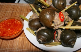 Thịt ốc giòn ngọt thấm đẫm trong nước chấm mắm gừng cùng vị nồng nàn của tía tô, rau răm làm tăng hương vị cho món ăn.
