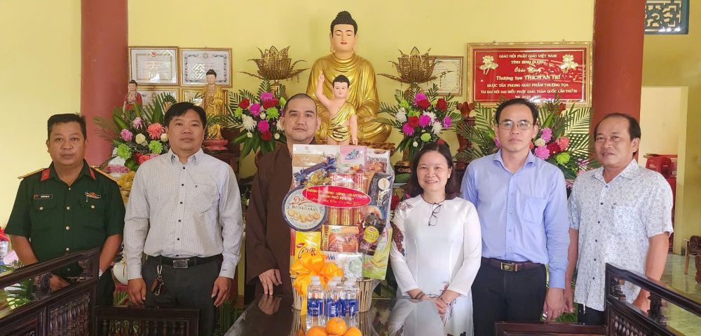 On the morning of May 9, 2025, leaders of the Party Committee, People's Council of Ben Cat City, and representatives from relevant offices visited places of worship in the city to celebrate Buddha's birthday.