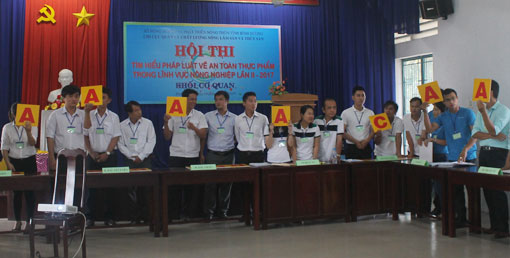 Nhằm tuyên truyền, phổ biến pháp luật về an toàn thực phẩm (ATTP) trong lĩnh vực nông, lâm, thủy sản, Chi cục Quản lý chất lượng nông, lâm và thủy sản, Sở Nông nghiệp và Phát triển nông thôn tỉnh đã tổ chức Hội thi Tìm hiểu pháp luật về ATTP trong lĩnh vực nông nghiệp lần II năm 2017. Hội thi năm nay hướng đến đối tượng là cán bộ làm công tác quản lý chất lượng nông, lâm và thủy sản của các phòng kinh tế, trạm thú y đến từ 9 huyện, thị, thành phố trong tỉnh.