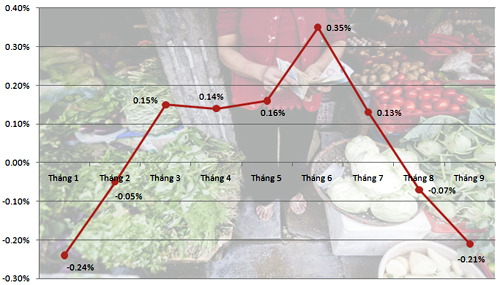Giảm 0,21% trong tháng 9, tính chung 3 quý, chỉ số giá tiêu dùng (CPI) đang ở mức thấp nhất trong một thập kỷ qua.