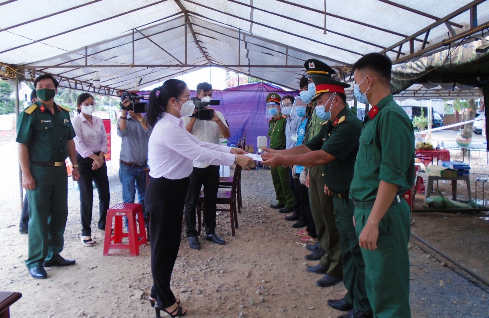 Lãnh đạo huyện Phú Giáo thăm hỏi, trao quà lực lượng làm nhiệm vụ phòng, chống Covid - 19 trên địa bàn huyện.