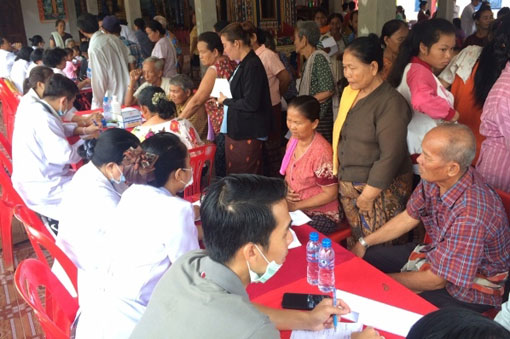 Trong chuyến công tác tại Champasak, đoàn đại biểu UBMTTQVN tỉnh Bình Dương đã tổ chức khám bệnh, cấp thuốc miễn phí cho người nghèo tại huyện Xanaxambuon. Ảnh: Đ.HẬU