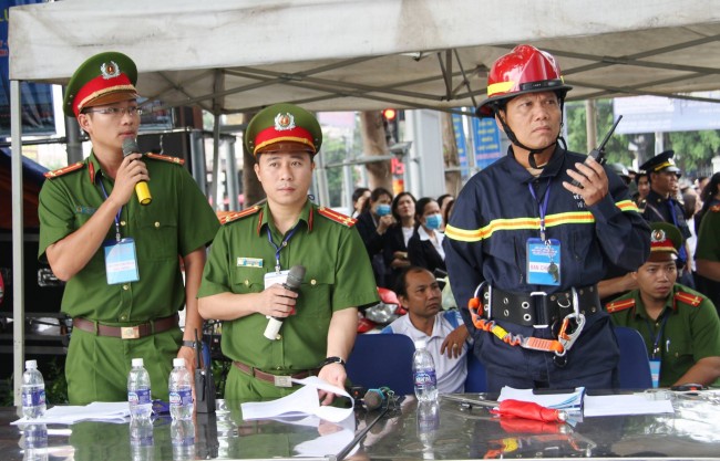 Buổi diễn tập còn nâng cao năng lực điều hành chỉ huy chữa cháy và cứu nạn, cứu hộ khi có nhiều lực lượng, phương tiện cùng tham gia.