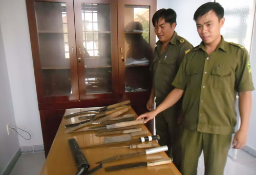 Tang vật Công an xã An Long thu được từ một vụ gây rối Ảnh:N.HẬU